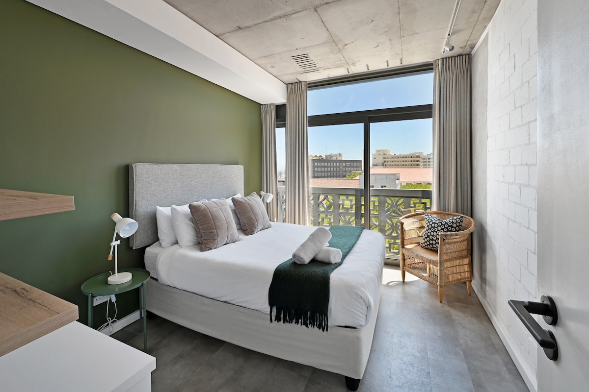 Este sublime apartamento tipo estudio es una celebración de los placeres simples de la vida: acostarse en la cama y escuchar el océano, leer tumbado en el sofá, noche de cine en el sofá cama. También es ideal para trabajar a distancia con su wifi de fibra potente y sin límites. Sal por la puerta al paseo marítimo y estarás a muy pocos pasos del V&A, Green Point Park, el mercado de Oranjezicht... por no hablar de las cafeterías, los restaurantes, las playas y las montañas. ¡Vamos, date un capricho!