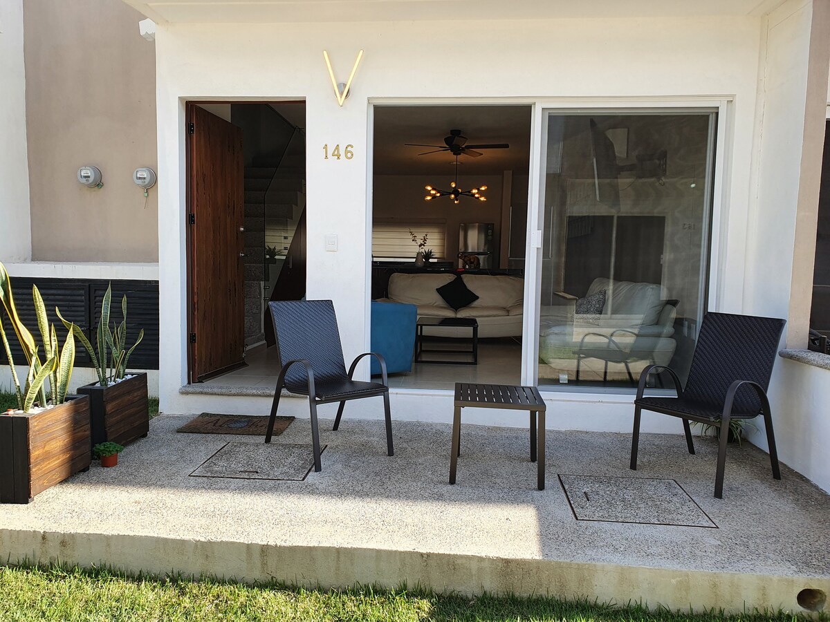 Bienvenidos a Casita Mar & Sol, ubicada en el Fraccionamiento Villa Paradiso con seguridad y fácil acceso a la casa. Una habitación con cama queen y baño privado, otra con dos camas individuales, sofá cama en la sala, estacionamiento privado, acceso a tres albercas, y mucho más. Ubicación ideal: * 5 playas públicas a menos de 20 minutos * 8 minutos del aeropuerto * 10 minutos de Nuevo Nayarit (Nuevo Vallarta) * 5 minutos de restaurantes ¡Tu espacio cómodo y práctico te espera!