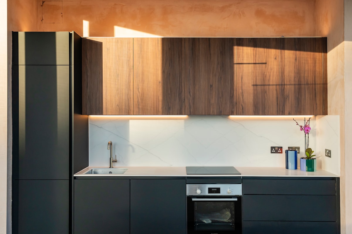 Relájate con un libro en un oasis de tranquilidad. Sumérgete en la rica historia de Spitalfields desde este tranquilo refugio de 37 m² con 1 dormitorio. Relájate en una hamaca brasileña bajo una higuera de hoja de violín de altura completa, el lugar perfecto para desconectar mientras la ciudad bulle a lo lejos. Disfruta de un proyector láser de cine con una pantalla de 100 pulgadas y un sonido envolvente para transmitir tus programas y películas favoritos. Este apartamento, que funciona con energía 100 % renovable, combina comodidad, entretenimiento y sostenibilidad en pleno centro de la ciudad.