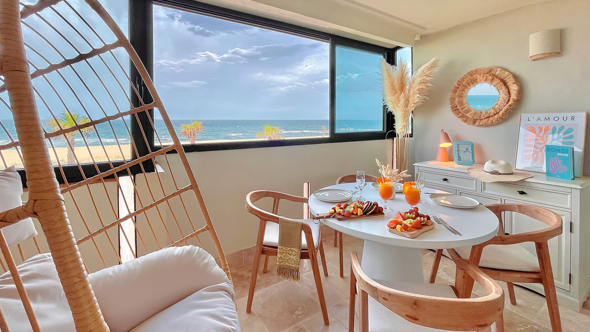 Bienvenido a este remanso de paz frente al mar, sin vecinos. Disfrute de unas vistas excepcionales, y déjese mecer por el sonido de las olas, desde este encantador apartamento cuidadosamente decorado:) Estará situado literalmente a 10 metros de la playa con acceso a pie directo desde la residencia. A 5 minutos a pie del Lydia, y de sus numerosas tiendas/restaurantes. Estacionamiento gratuito y privado . ¡El Wi-Fi es de muy alta velocidad!