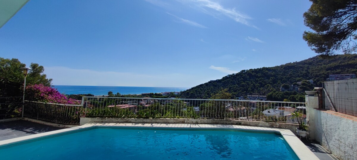 Relax and disconnect in this quiet, private, beautiful and elegant apartment with the amazing sea view. If you are looking for a place to spend few days out of the city, with a pool, amazing views and home cinema, you just found a perfect place. The flat is in the quiet district of Castelldefels, a 10 min by walk to the beach Unique place tastefully decorated and recently renovated. A special place for people who look for a privacy and peace. The flat doesn't have air conditioning.