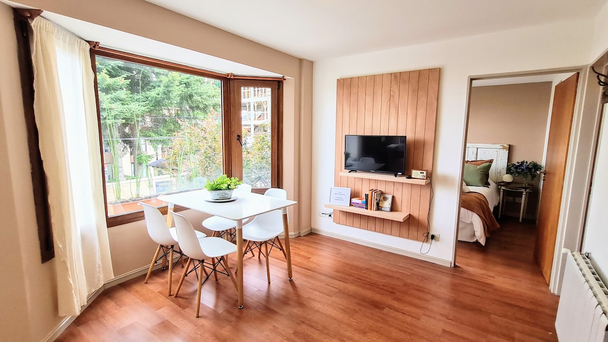 El departamento tipo loft esta ubicado en el centro de Bariloche a solo 4 cuadras de la calle principal, muy cerca del aeropuerto y muy próximo a todas las atracciones que la ciudad, como el Cerro Catedral, Lago Nahuel Huapi, el lago Gutiérrez y el cerro Otto. Todos los servicios y atracciones como restaurantes, bares, centros comerciales, chocolaterias, heladerías, etc estan a un paso del departamento. La propiedad esta modernamente equipada es amplia, tranquila y muy privada.