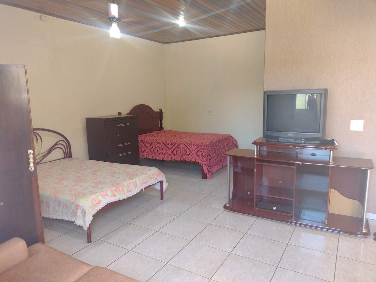 Casa espaciosa, con fácil acceso a supermercados, panaderías para el desayuno. Excelentes restaurantes. Casa con sala de estar espaciosa en la parte inferior con lavabo, sofás. El valor de la tarifa diaria en el anuncio es por persona. Sala superior, mesa con 6 asientos. Dos dormitorios, baño con ducha de agua caliente. Ventilador de techo, nevera, cocina, microondas, TV, wifi, cafetera con café instantáneo y azúcares. ¡Totalmente independiente! Disponemos de tabla de planchar, plancha de vapor y secador de pelo.