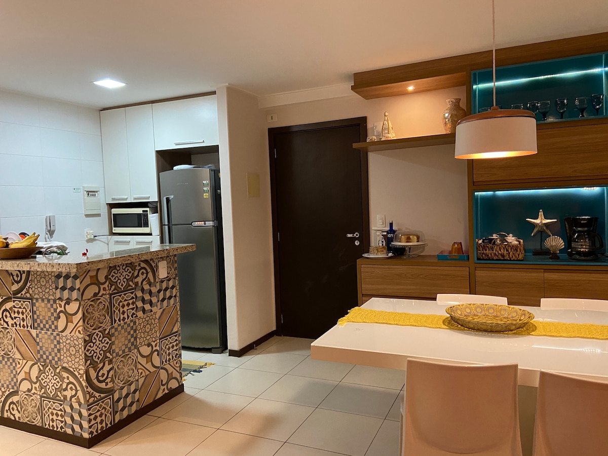 ¡Imagina pasar unos días en un paraíso con estilo! Nuestro apartamento está en ese lugar. El “Barra Bali”, un condominio frente al mar en la costa sur de Alagoas, en la hermosa Barra de São Miguel, apto. en la planta baja, con 3 suites, 160,00 m² de confort y buen gusto, mobiliario, decoración e iluminación planificados, totalmente climatizado, integrado con el área de ocio y lo mejor, a pocos pasos del mar.