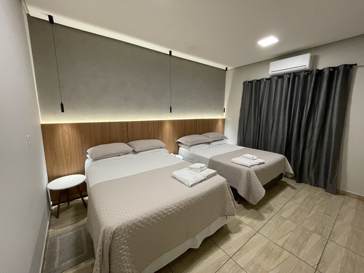 Tu hogar lejos de casa tiene todo lo que tú y tu familia necesitan para sentirse bien acomodados. La casa tiene un gran espacio interno, una cocina equipada con todo lo necesario y aire acondicionado en todas las habitaciones. Prex. a varios lugares de interés: 650 M de compras/cine; A 2,8 km de la escalera/Cristo; Puerto de Baé/ Playas a 2,2 km; 8 km Parque Águas Quentes; Cascada de 3,9 km; ¡Ven y disfruta de lo mejor de la ciudad en el mejor alojamiento!