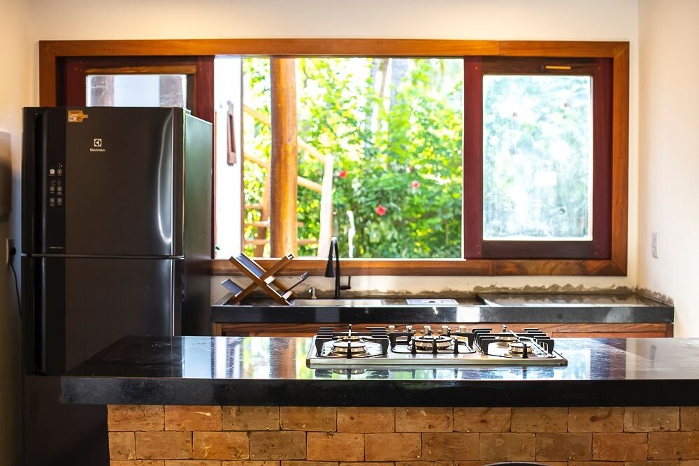 Una casita construida y decorada con mucho cariño. Encantadora, cómoda, acogedora, cerca de la hermosa playa de Bombaça. Cuenta con cocina bien equipada, hamacas, aire acondicionado, ventilador de techo, además de área de servicio con lavadora. Situado en un condominio cerrado, con lagos y mucha vegetación, es un lugar de naturaleza exuberante, silencio y privacidad. Aquí te despiertas con el canto de los pájaros, y escuchas el ruido del mar en cualquier momento. Perfecto para aquellos que quieren relajarse y dejarse encantar.