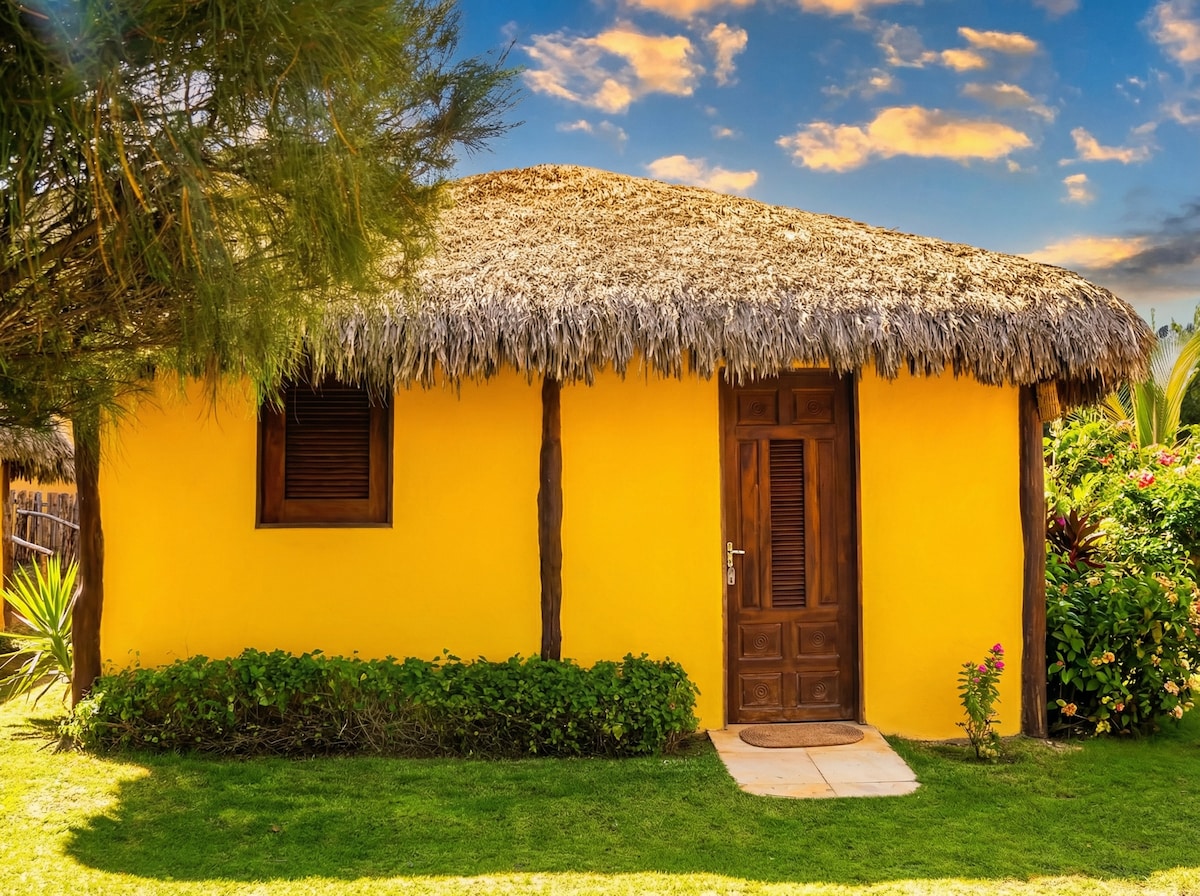 Os quartos foram recentemente aprimorados com ar condicionado, proporcionando um ambiente fresco e agradável para recarregar energias após um dia ao sol. O quarto possui uma cama de casal e uma bicama, além de um suporte para rede.