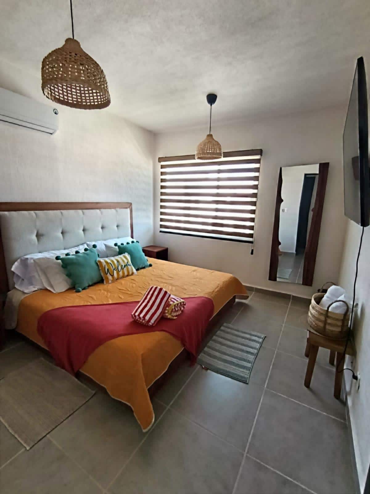 Departamento nuevo con todos los servicios. Perfecto para vacacionar en familia, pareja o solo. Cuenta con WiFi, Smart TV, AC y cocina equipada. Piscina y palapa en el condominio. Acceso a Club de Playa con piscinas, palapas y playa privada. El Club de Playa está a 7 km (15 minutos en coche). Cuenta con dos habitaciones para cuatro personas. Una con cama matrimonial y la otra con dos camas individuales. Un baño completo. Alojamiento pensado para un ambiente familiar. Cerca de playa La Bonfil