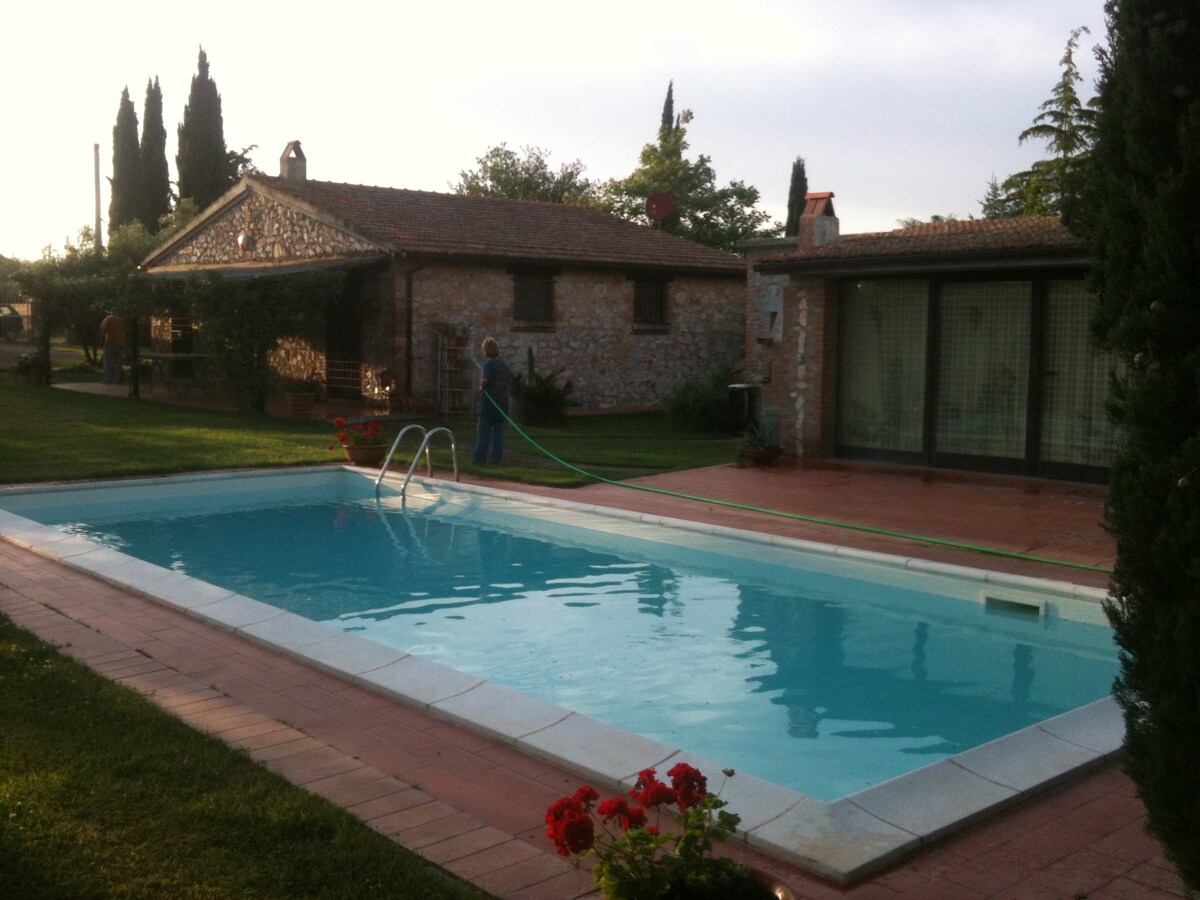 Ubicada en una pintoresca aldea, con vistas a las colinas de Chianti, esta encantadora casa de campo está a solo 10 minutos de Siena y Castellina in Chianti. Recientemente renovado, combina el auténtico encanto toscano con las comodidades modernas. La casa cuenta con dos dormitorios, dos baños, una acogedora sala de estar y una cocina totalmente equipada con lavavajillas, dos neveras y una lavadora. En el exterior, disfruta de un hermoso jardín y relájate en el jacuzzi de mármol al aire libre, empapándote de las impresionantes vistas.