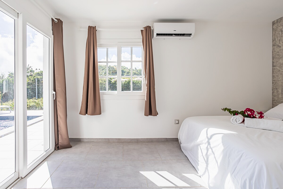 Ubicadas en un pequeño rincón tranquilo , 2 villas Rubí y Topacio totalmente independientes le ofrecerán lo mejor para ayudarle a pasar unas muy buenas vacaciones. Cerca de los servicios. Villas certificadas con 4*. Las villas son modernas, prácticas y están amuebladas con gusto. La villa Rubis tiene muebles de tendencia roja y la villa Topaze muebles de tendencia gris. Todas las habitaciones tienen una magnífica vista al mar Autónomos en caso de cortes de agua. Villas con conserjería