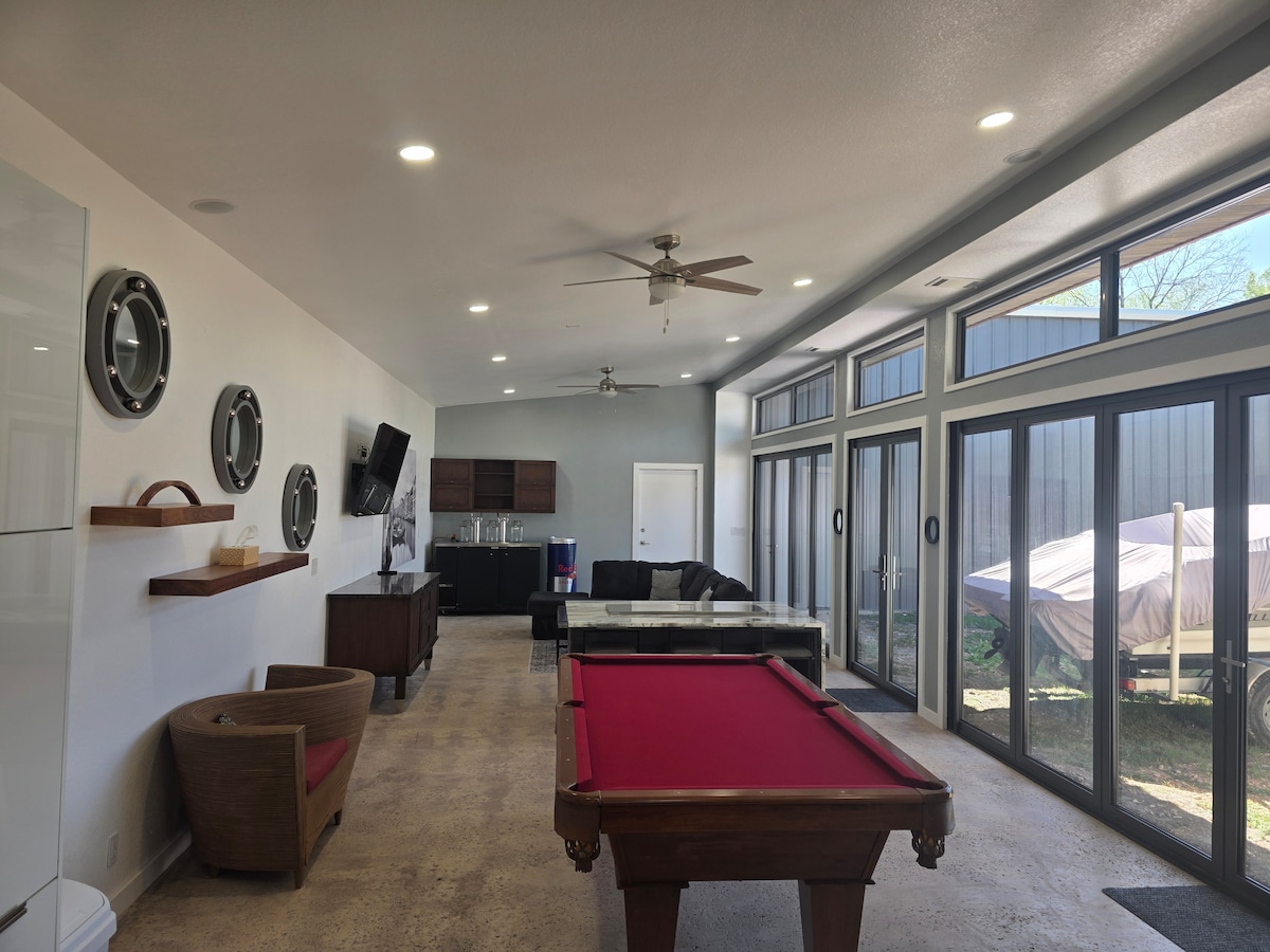 Bungalow moderno y elegante en el río Colorado, a pocos minutos del centro de Bastrop. Relájate en el porche cubierto o en la bañera de hidromasaje privada mientras disfrutas de las impresionantes vistas del valle del río y las espectaculares puestas de sol. Disfruta de la barbacoa o explora el cercano Fisherman's Park para practicar kayak y piragüismo. Perfecto para escapadas románticas o aventuras al aire libre, este refugio frente al río combina comodidad y estilo en una ubicación inmejorable. ¡Reserva ahora y disfruta de una estancia inolvidable!