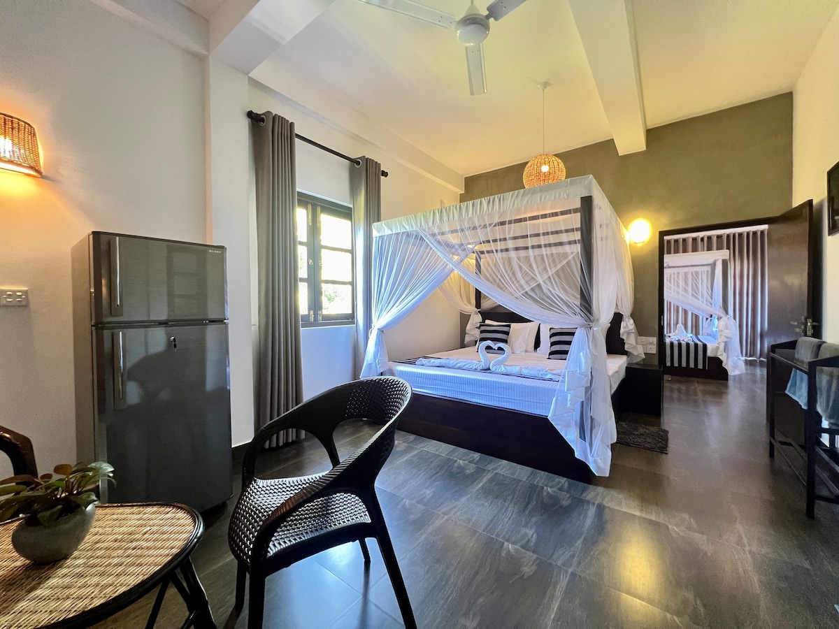 🌿 La Brisa by Harry is a calm beachfront villa in Dickwella, SriLanka.Close to the popular Hiriketiya Beach( Blue beach), Mirissa & Thalpe beach.Uniquely located at a natural turtle nesting spot where sea turtles come ashore to lay eggs right in front of the villa. The villa features one spacious, air-conditioned bedroom with a large king-size bed & an extra bed, making it suitable for couples, honeymoon couples& families with children.