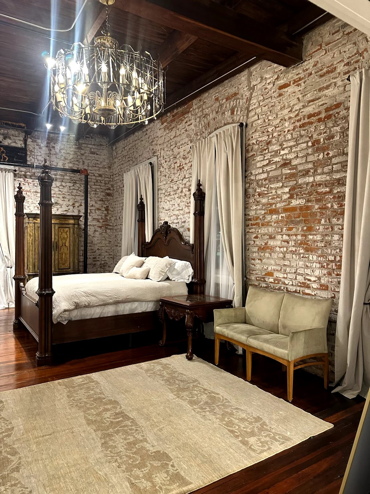 Este estudio, bellamente restaurado, ofrece un acogedor espacio de estar, una cocina actualizada y un lujoso baño con ducha a ras de suelo y bañera con patas. Perfecto para huéspedes individuales o familias pequeñas. El edificio Kinberger también tiene una pintoresca cafetería al estilo de Nueva Orleans en la parte inferior del edificio, junto con un impresionante espacio boutique. Con las históricas esclusas de Plaquemine también a solo 5 minutos a pie, tu estancia seguramente será agradable y sin estrés.