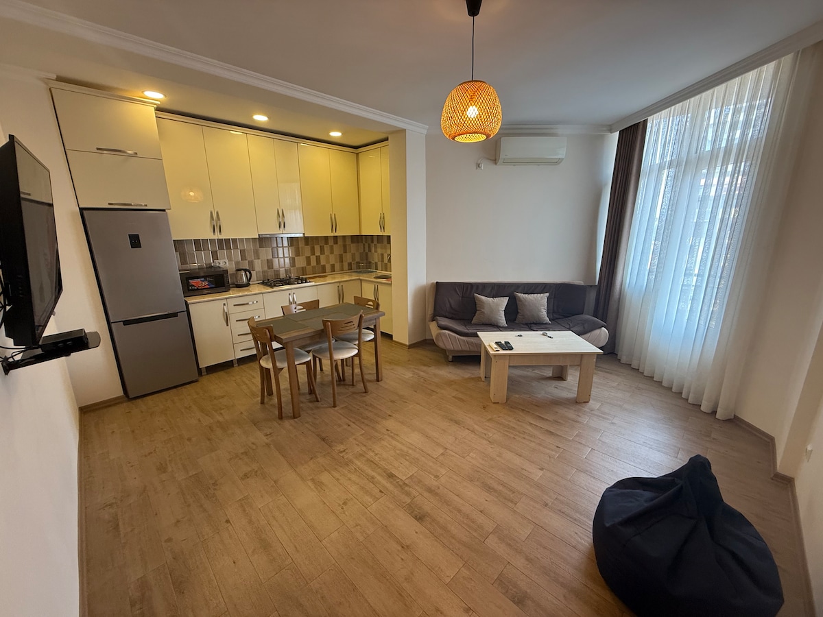 Acogedor apartamento en el corazón de Batumi . ¡Bienvenido a nuestro apartamento luminoso y cómodo, ideal para viajeros que quieren sentirse como en casa! Por qué te gustará aquí: Excelente ubicación*, a pocos pasos de las principales atracciones, cafés, tiendas y transporte. Amplio y cómodo*: renovación moderna, muebles cómodos y todo lo que necesitas para vivir. *Completamente equipado*: cocina con electrodomésticos, ropa de cama limpia, toallas, wifi y TV.