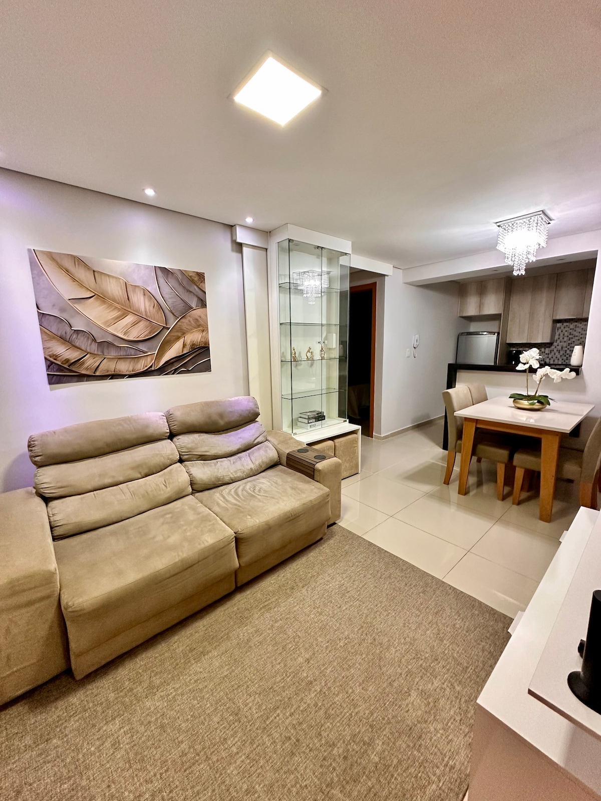 Apartamento muito aconchegante! internet Garagem coberta Sala c/ ar condicionado, smart tv, sofá, poltrona, mesa de jantar e espaço p/ trabalho Quarto c/ ar condicionado, cama casal, smart tv e guarda roupas. Cozinha completa, c/ fogão coock top, geladeira, microondas, air fryer, cafeteira, liquidificador, jogo de panelas, pratos, copos, taças, talheres e todos utensílios necessários Banheiro c/ box, secador de cabelo e água quente Lavanderia c/ máquina lava e seca Piscina Academia Mini Mercado