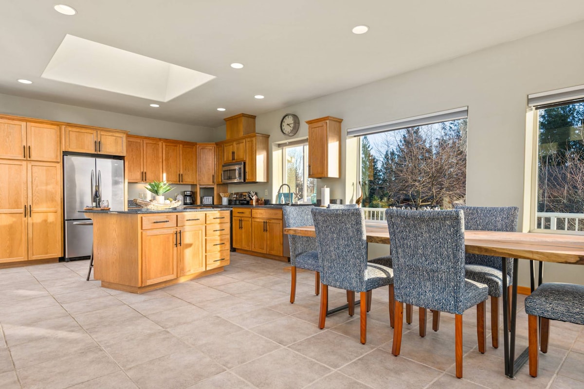 El alojamiento renovado está ubicado en las laderas de las colinas en Oceanside, con impresionantes vistas desde los 3 niveles. Balcón con parrilla a gas junto a la sala de estar con vistas a 3 Arch Rocks y Cape Lookout. La casa cuenta con un techo de barril único, pisos de madera cálida y molduras en todas partes. La cocina se ha actualizado, con gabinetes, encimeras, salpicaduras de azulejos y electrodomésticos SS. Una mezcla de buen gusto de la arquitectura original y la sensación moderna actualizada. Paraíso de trabajo remoto con escritorio en el espacio del loft. Internet de alta velocidad.