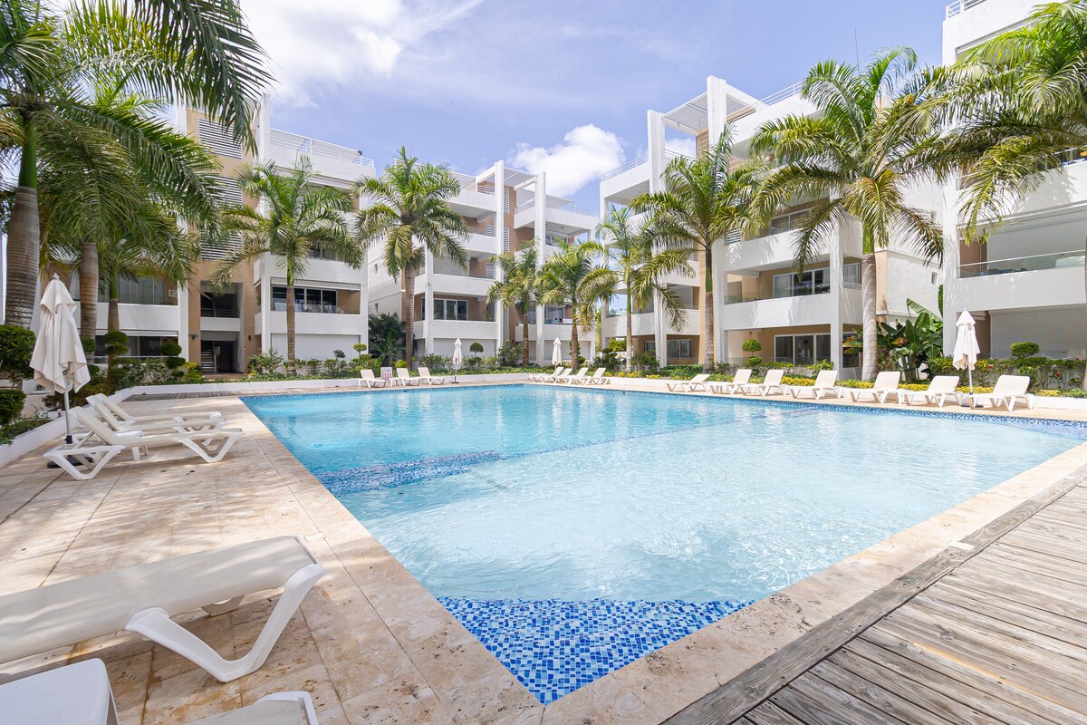Relájese en un cómodo departamento junto a la piscina, a solo 10 minutos a pie de la playa, con wifi Starlink, cortinas opacas, espacio de trabajo, balcón privado y acceso a la piscina. Tenga en cuenta que, en este momento, hay obras de construcción cercanas durante el día y es posible que se escuche algo de ruido. Recomendamos este alojamiento para los huéspedes que planean disfrutar de Bayahibe durante el día y regresar para relajarse por la noche.