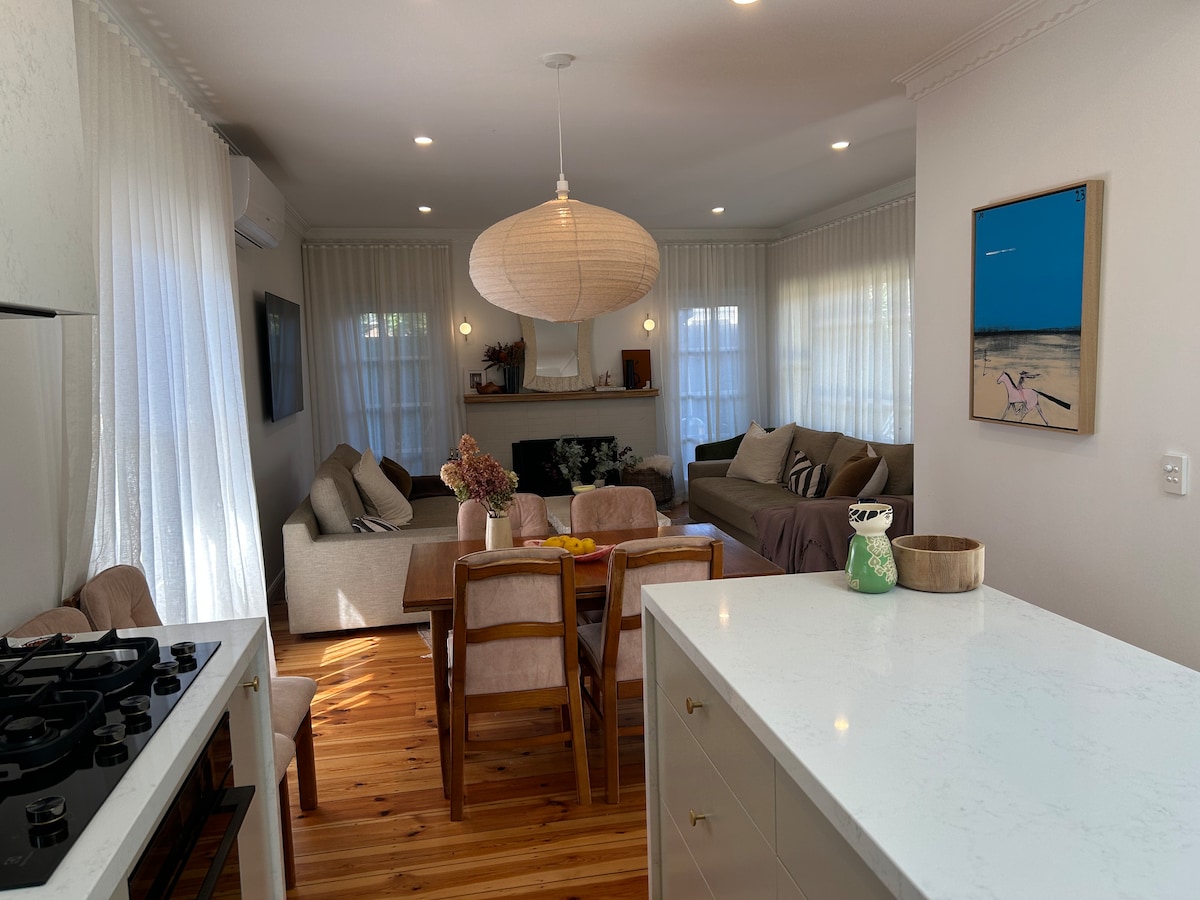 This beautiful art deco home is perfect for anyone looking for a comfortable and convenient stay! DETAILS - Downstairs open plan kitchen, living, dining, sitting room, toilet, laundry & study nook - Upstairs 3 bedrooms & 2 bathrooms - Ample street parking - Please msg re pets - No parties 😔 THE AREA - Centrally located near shops & restaurants - Close to parks & golf - 10 min drive to Brighton Beach boxes - 5 min walk to train station - 17 min train to Richmond & MCG - 20 min train to CBD