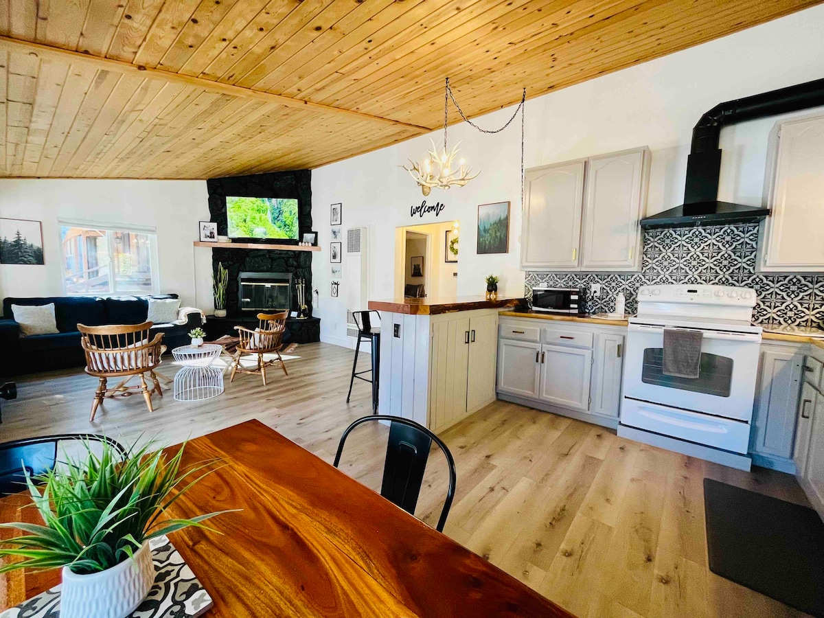 Trae a tu familia y amigos a este elegante refugio ubicado a pocas manzanas de los senderos locales. Con un patio totalmente vallado, chimenea de gas, barbacoa de gas, zona de estar a la sombra y mesa de pícnic. Esta cabaña cuenta con una cocina totalmente equipada para cenas navideñas y comidas diarias. Con televisores en cada habitación, puedes tener tiempo para hacer lo tuyo. Nos encantan los perros y encontrarás todo lo que necesitas para que ellos también se sientan como en casa. Cuencos, camas, mantas y juguetes. ¡Wifi, Netflix, Showtime, Disney, Amazon y muchos juegos para disfrutar!