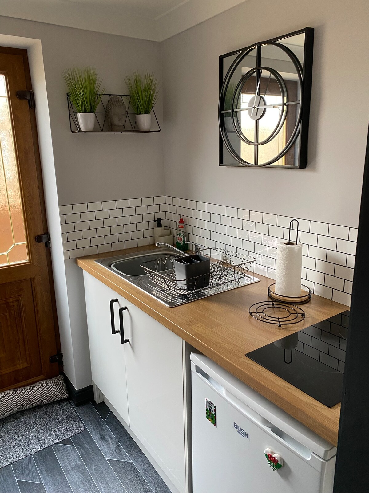 Nuestra casa de campo es un salón/cocina que es luminoso y espacioso con puertas francesas que conducen al patio. Proporciono leche, té, café, azúcar, cereales, pastel, galletas. Tenemos una lavadora y secadora en la cocina. Estos NO son para uso de estancias de una noche, solo para huéspedes que se alojen 4 días o más. Arriba, dormitorio doble, TV, secador de pelo, armario, perchas, mesitas de noche, lámparas, plancha y tabla de planchar. Baño con bañera y ducha superior. Proporciono toallas, gel de ducha, champú, acondicionador y rollos de papel higiénico.