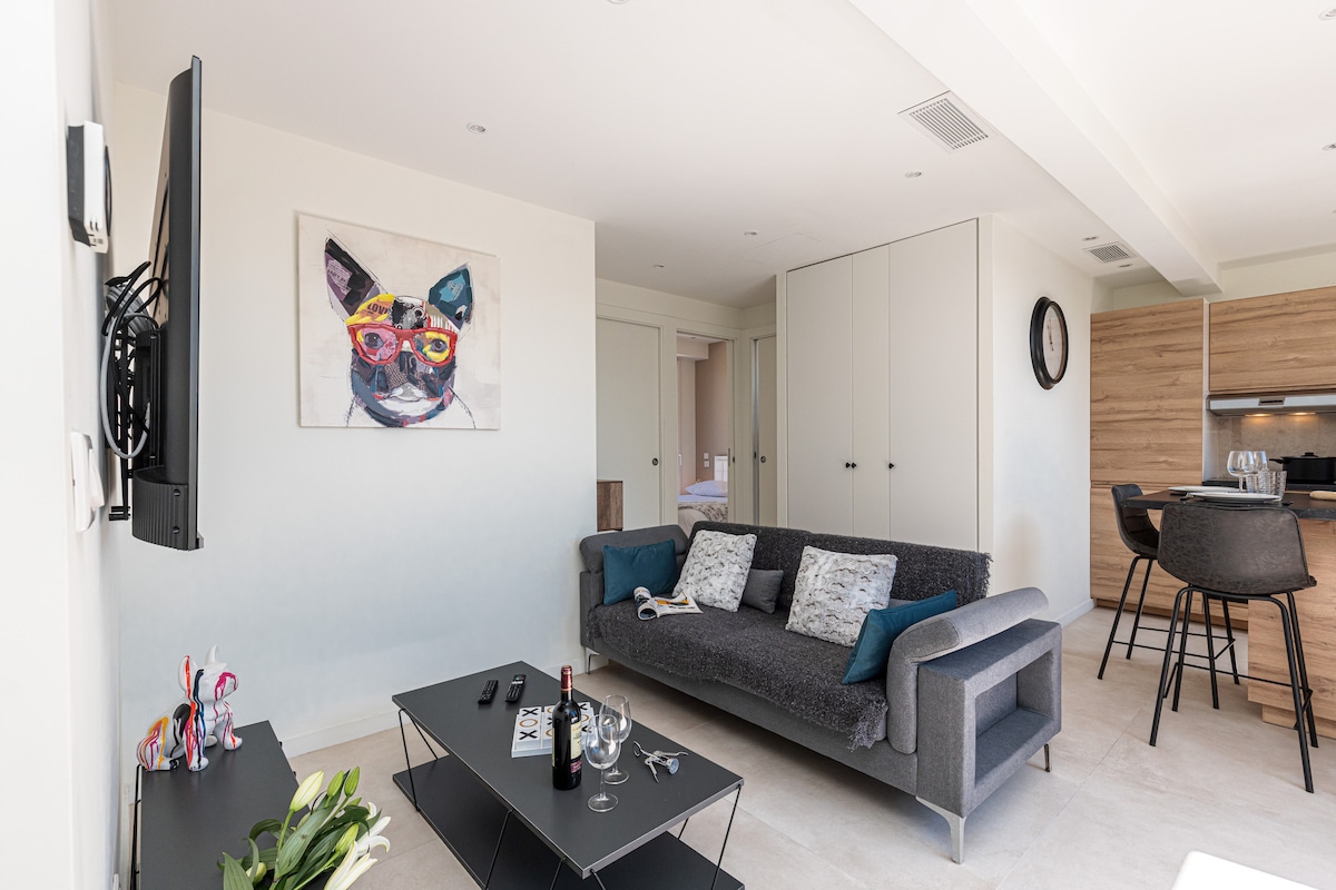 Amplio estudio recién renovado: muebles nuevos, modernos y de calidad, cocina y electrodomésticos nuevos, baño nuevo, incluso toallas nuevas. La sensación de que entras es nueva y fresca. La ubicación está justo en el corazón de la ciudad, junto al mercado, en la muy buscada zona vibrante con cafeterías, restaurantes y lindas boutiques. La residencia se encuentra a 500 metros de la estación de tren y el supermercado, y a 1 km de las playas de arena privadas o públicas de Beaulieu sur Mer.