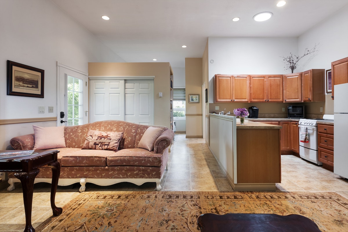 Esta encantadora casa de huéspedes está escondida en un entorno similar a un parque cerca de la entrada al Willamette Valley Wine Country. Este estudio muy espacioso ofrece un espacio cálido y acogedor con una cama tamaño king y una cómoda cama de día con una cama nido extraíble. También una sala de estar muy espaciosa con televisión para streaming ( Roku/Netflix instalado ) y chimenea. Disfruta de comidas ligeras o aperitivos en la cocina pequeña con nevera completa, microondas,tostadora, cafetera y todos los utensilios de cocina. Hermoso entorno exterior.