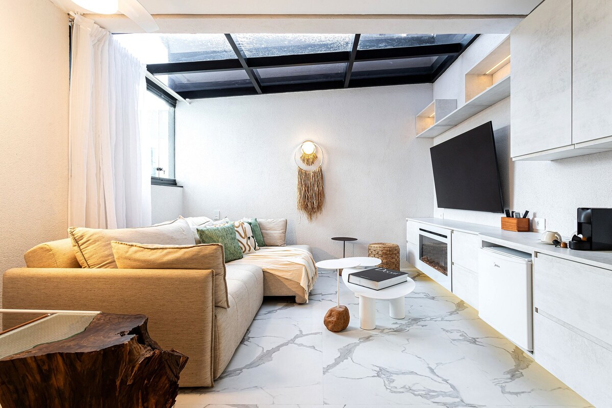 Transpórtate a la isla de Java y disfruta de una experiencia única en este lugar mágico y muy bien ubicado. Vista única del Valle de Anhangabaú. Cama Queen, hidromasaje con cromoterapia, decoración única, cocina equipada, baño con superducha, Alexa, internet de alta velocidad, ropa de cama y juegos de toallas disponibles con una hamaca frente a la ventana. Además, disfruta de una increíble chimenea hecha de rocas volcánicas. Surrealista, ¿no? ¡Disfrútalo! 𝐉𝐨𝐬𝐞𝐟𝐚 𝐁𝐨𝐫𝐠𝐞𝐬