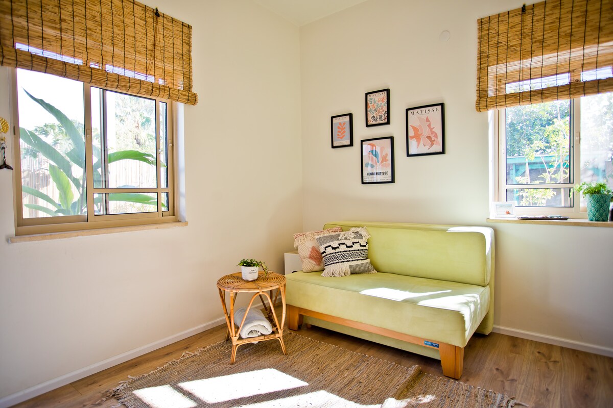 Una nueva unidad independiente con entrada independiente a tu jardín cubierto privado en un barrio tranquilo. Y SÍ, somos los más cercanos a la playa a solo 3 minutos en línea recta (sin escalones en absoluto). Estamos a solo 35 minutos de Tel Aviv y Haifa. Y ceasaria y zichron yaachov a solo 15 minutos. Solo tienes que buscar la bandera inglesa.