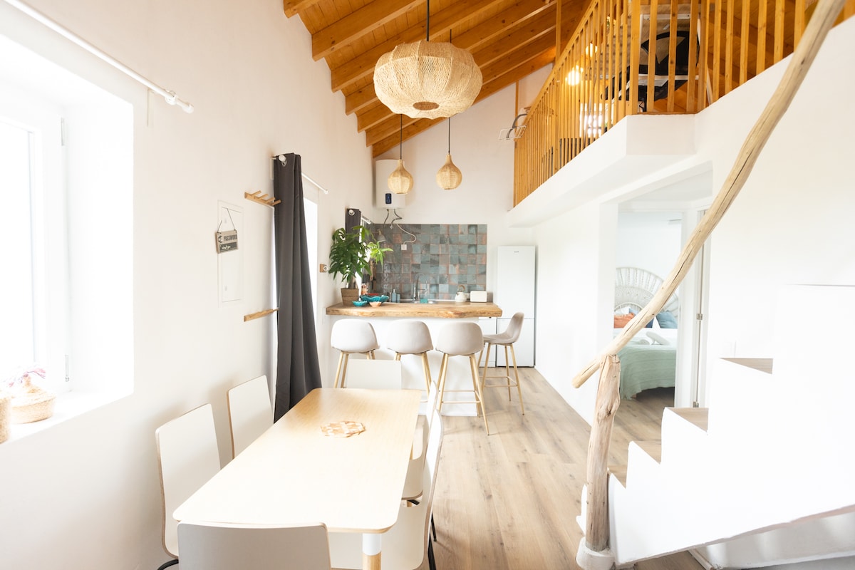 El loft de 1 dormitorio está ubicado en el segundo nivel de una casita dentro de Quinta Camarena, una hermosa propiedad de 4 HECTÁREAS en el campo de Alentejo. Los huéspedes pueden usar todas las áreas exteriores de la propiedad, como la piscina, el área de fitness y todas las áreas verdes exteriores. La casa tiene un dormitorio privado, una cocina pequeña equipada para cocinar, una zona común y un pequeño patio exterior. Perfecto para una pequeña familia o algunos amigos.