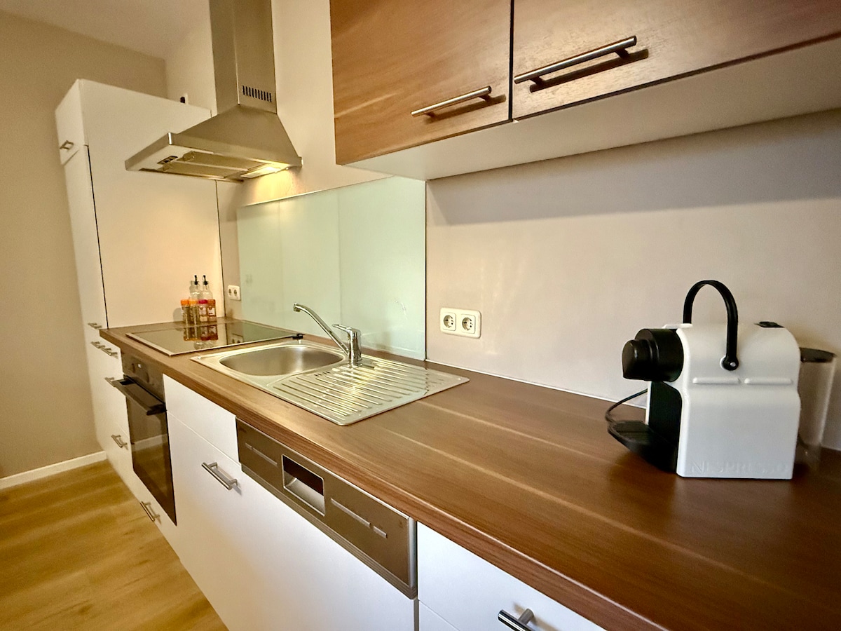 Gemütlich eingerichtete Wohnung mit eigenem Eingang. Küche mit Spülmaschine, Ceranfeld, Backofen, Kaffeemaschine, Wasserkocher, Toaster und Mikrowelle TV + WLan vorhanden, Couch im Wohnzimmer kann als 2. Bett genutzt werden (1,50 x 2,00 m) Boxspringbett (1,80 x 2,00 m) Schrank, gr. Spiegel Die Wohnung ist für max. 4 Personen Badezimmer mit Dusche, WC und Waschtisch Große überdachte Terrasse mit Tisch und Stühlen, Sonnenschirm ruhige Wohngegend, kein Durchgangsverkehr 100 m bis zum Meulenwald