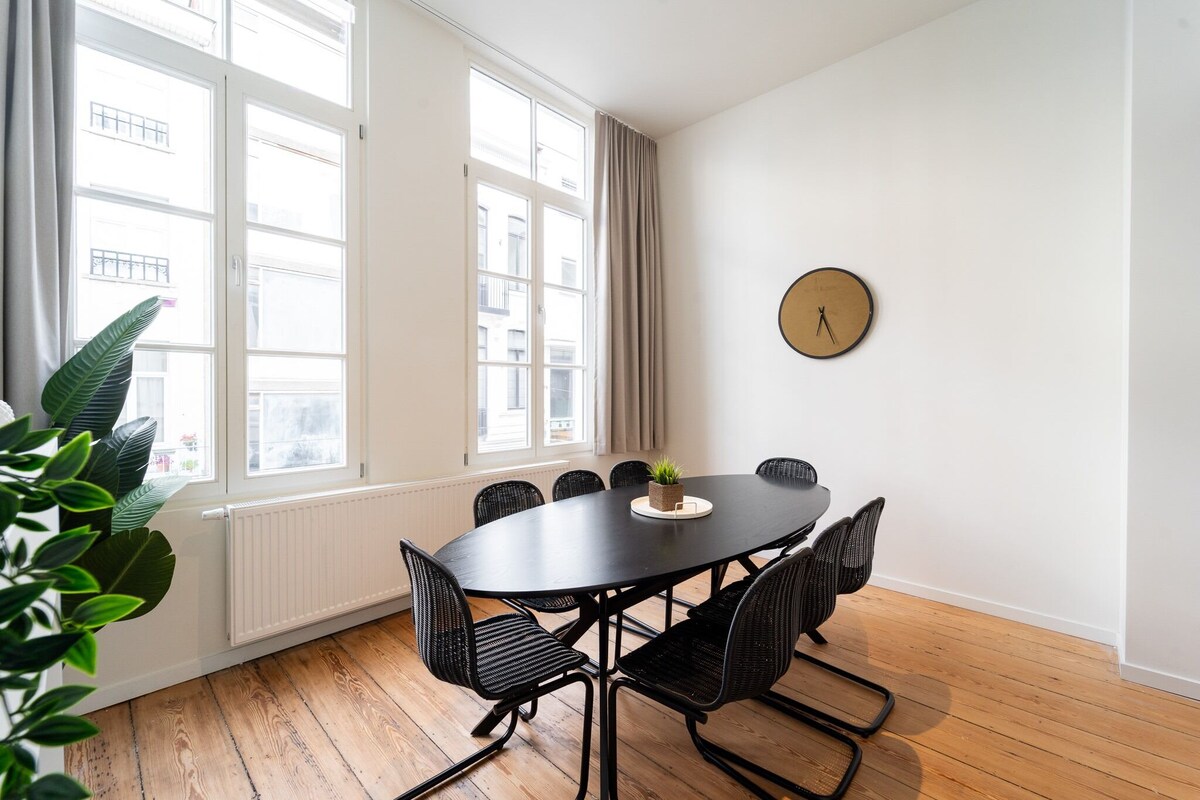 ✨LUXURY LOFT OF 190m2✨with FREE PARKING, 3bedrooms, 2bathrooms, 2toilets & tropical terrasse with a view, walking distance from the station & city center. For up to 8 guests Master Bedroom: one king size bed (180x200) White Room: two queen size beds (140x200) Mezzanine: one queen size bed (140x200) (+huge couch in the living room) Bathroom 1: shower +bath Bathroom 2: bath Washing machine & dryer Fully equipped kitchen Hair dryers Babyfoot Free wifi Games Gym No parties or loud music allowed
