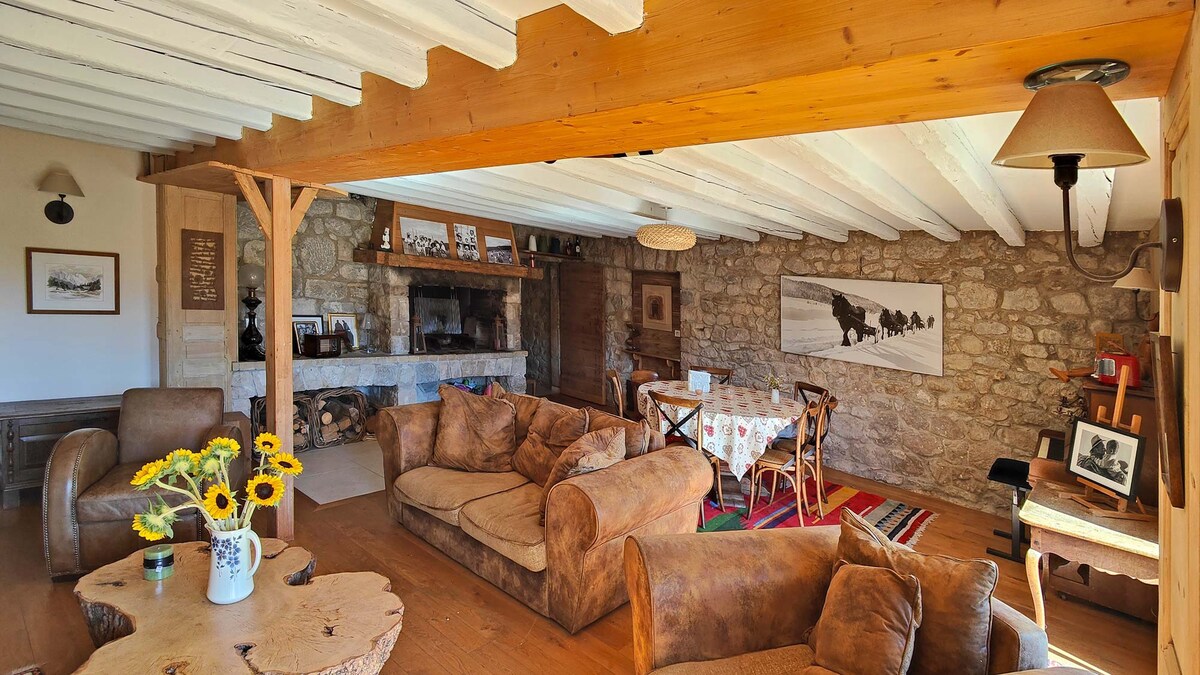 Cabaña situada en el corazón de las montañas de Haut Jura a 1100 m. Inmersión total en la naturaleza con una vista impresionante del valle y el arroyo de abajo. Muchos paseos cerca: montañas y cascadas. Idealmente situado en el campo y cerca del pueblo de La Pesse con numerosas tiendas (restaurantes, panadería, delicatessen, quesería, supermercado). Totalmente equipada, aislada y climatizada: relájate en paz y tranquilidad en todas las estaciones :) Ven a relajarte bajo las estrellas en el baño nórdico caliente.