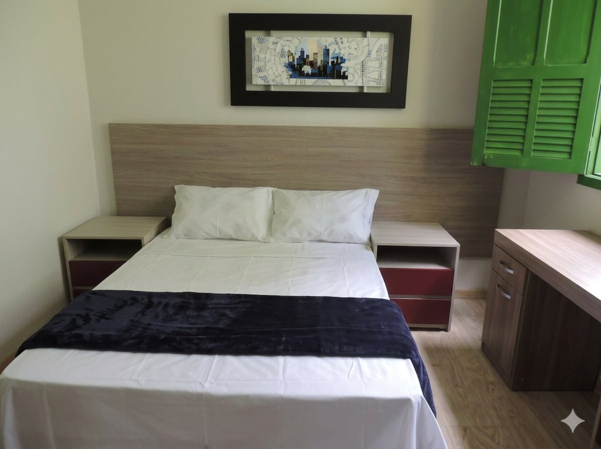 Imagina alojarte en un apartamento dentro del Hotel Mercure, un lugar increíble para vivir momentos especiales. Te enamorarás de la habitación ideal para parejas, familias y solteros. Equipado con una cama doble y una cama individual. Todo climatizado, con wifi y TV por cable. El hotel ofrece gimnasio, piscina climatizada, sauna. ESTACIONAMIENTO INCLUIDO.