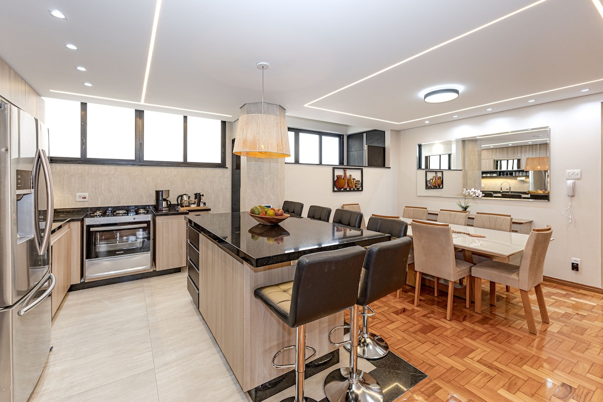 Traiga a toda su familia a este fantástico alojamiento, una verdadera joya en Airbnb: un departamento de 4 habitaciones, ideal para quienes buscan comodidad y mucho espacio. Este departamento grande, recién disponible en nuestro catálogo, es ideal tanto para descansar como para estancias de trabajo. Su familia disfrutará del placer de estar en la ubicación más privilegiada del barrio, el «Savassi do Buritis», con todo a su alrededor y a pocos minutos a pie (la misma ubicación que las demás propiedades de nuestro catálogo). 2 lugares de estacionamiento