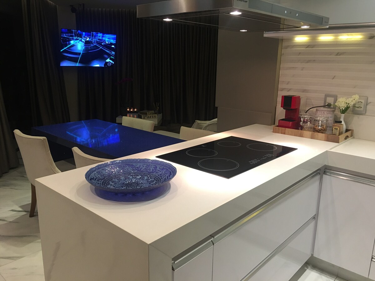 Loft de lujo, 45 m2, aire acondicionado, mesa para 4 personas y encimera, cocina completa y equipada, máquina de secado, máquina Nespresso y otros detalles. Muy espacioso con cama queen, 1 sofá cama y Smart TV 55'' con wifi y net. ¡Hermosa vista! Zona exterior común: Gimnasio completo, lavandería, piscina climatizada, jacuzzi y sauna. Ubicación privilegiada cerca de Diamond, Hosp. Materdei, Mercado Central de BH, Supernosso, etc. 1 plaza y portería 24 horas ¡Servicios para que te sientas como en casa!