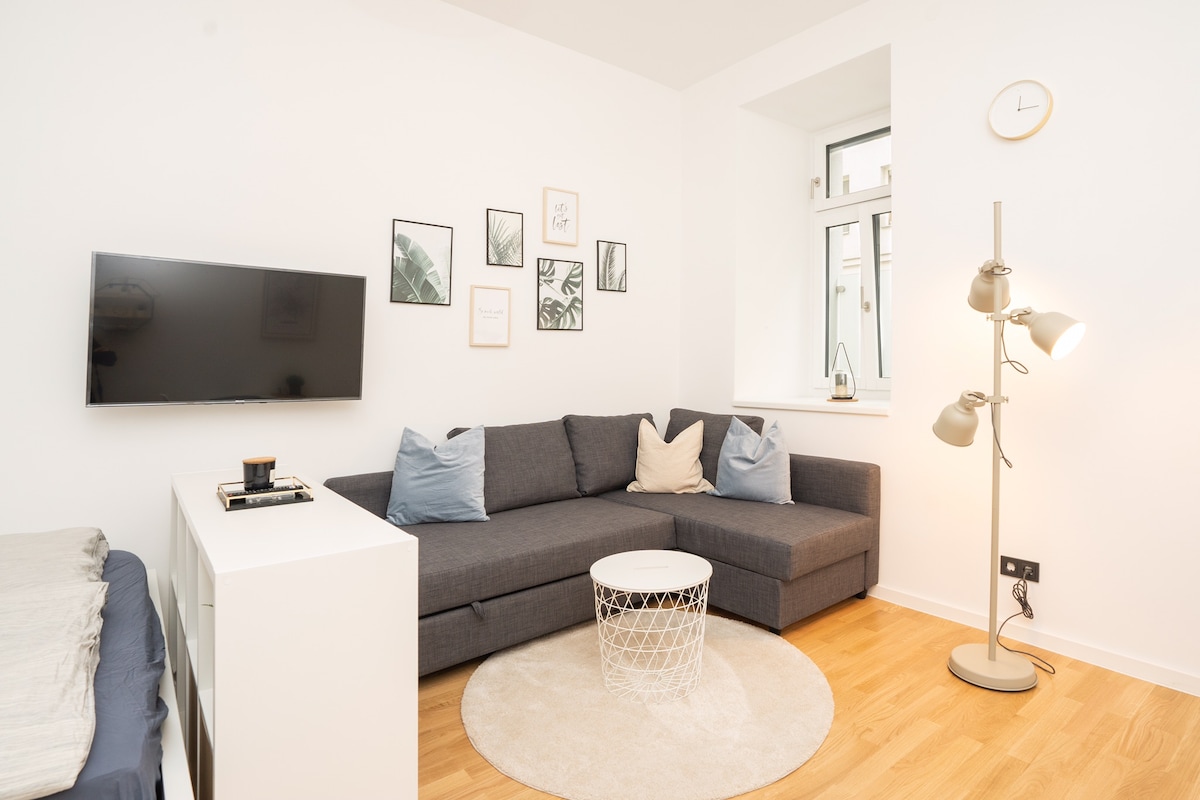 En nuestro estudio de arquitectura de un dormitorio, ¡disfrutarás de una perspectiva única y juguetona de Viena! Nuestro espacio tiene capacidad para dos huéspedes, tiene una ubicación céntrica en un barrio tranquilo y está a solo dos cuadras del Palacio Belvedere. El estudio también está bien conectado con todos los principales medios de transporte público. ¡Experimenta Viena desde un nuevo punto de vista!