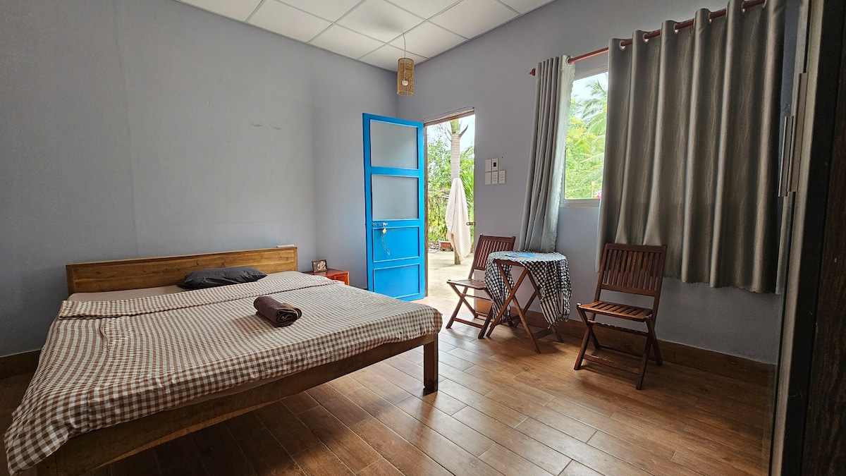 Welcome to my home sweet home! It's a cozy room with one bed, a wardrobe, and your own shower and toilet, nestled in the beautiful Ben Tre, right in the heart of the Mekong Delta. You'll love the outdoor space, amazing views, perfect location, and friendly atmosphere here. Whether you're a couple, solo adventurer, family with kids, big group, or bringing your furry friend along, you're all welcome with open arms! Come relax with us and enjoy some quality time together.