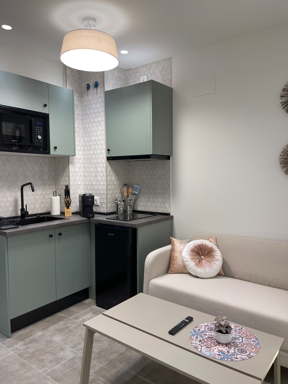 Situado en la planta baja de un edificio de nueva construcción, Picasso City Centre 1B es la unidad más pequeña de la cartera, pero todavía puede disfrutar de la azotea comunitaria. Se encuentra en el corazón del centro histórico, entre las Atarazanas Mercado y la calle comercial de la calle Nueva. Este apartamento cómodo y equipado cuenta con todas las comodidades y servicios para que tu viaje a Málaga se sienta como en casa lejos de casa.