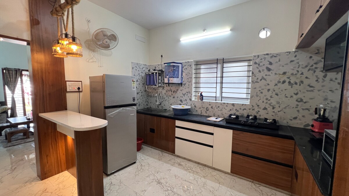 Your private hideout, thoughtfully designed with all modern amenities under one roof. This exclusive 4 BHK duplex offers the ideal blend of comfort and luxury. It is nestled amidst fruit-bearing trees, ensuring peace, greenery, and serenity—securely located within Aho Havens, Anugraha Layout. You can bring out the master chef in you in our fully equipped kitchen or enjoy an unforgettable, star-gazed barbecue nights that turns every evening into a celebration.