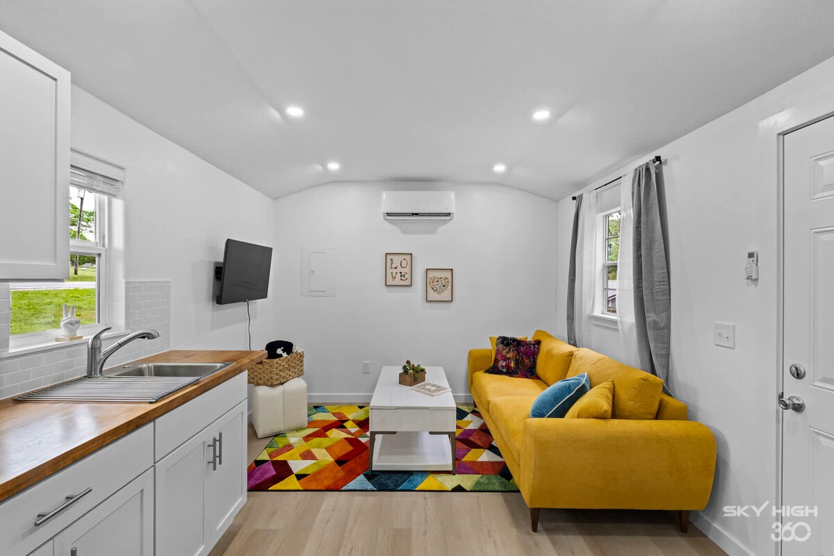 This brand new, 900 sq. ft. tiny home lives big with its open concept. Complete with a Queen size bedroom on one end and a cozy living room on the other with a full kitchen, and a dedicated office space in the middle. Located close to Crystal Lake and Downtown Decatur, and minutes from Downtown Bentonville, but without the high price tag. Only 15 miles to the infamous Coler Mtn. Bike Preserve, you can ride or drive and avoid the traffic. "The Duke," right next door is also available if you'd lik