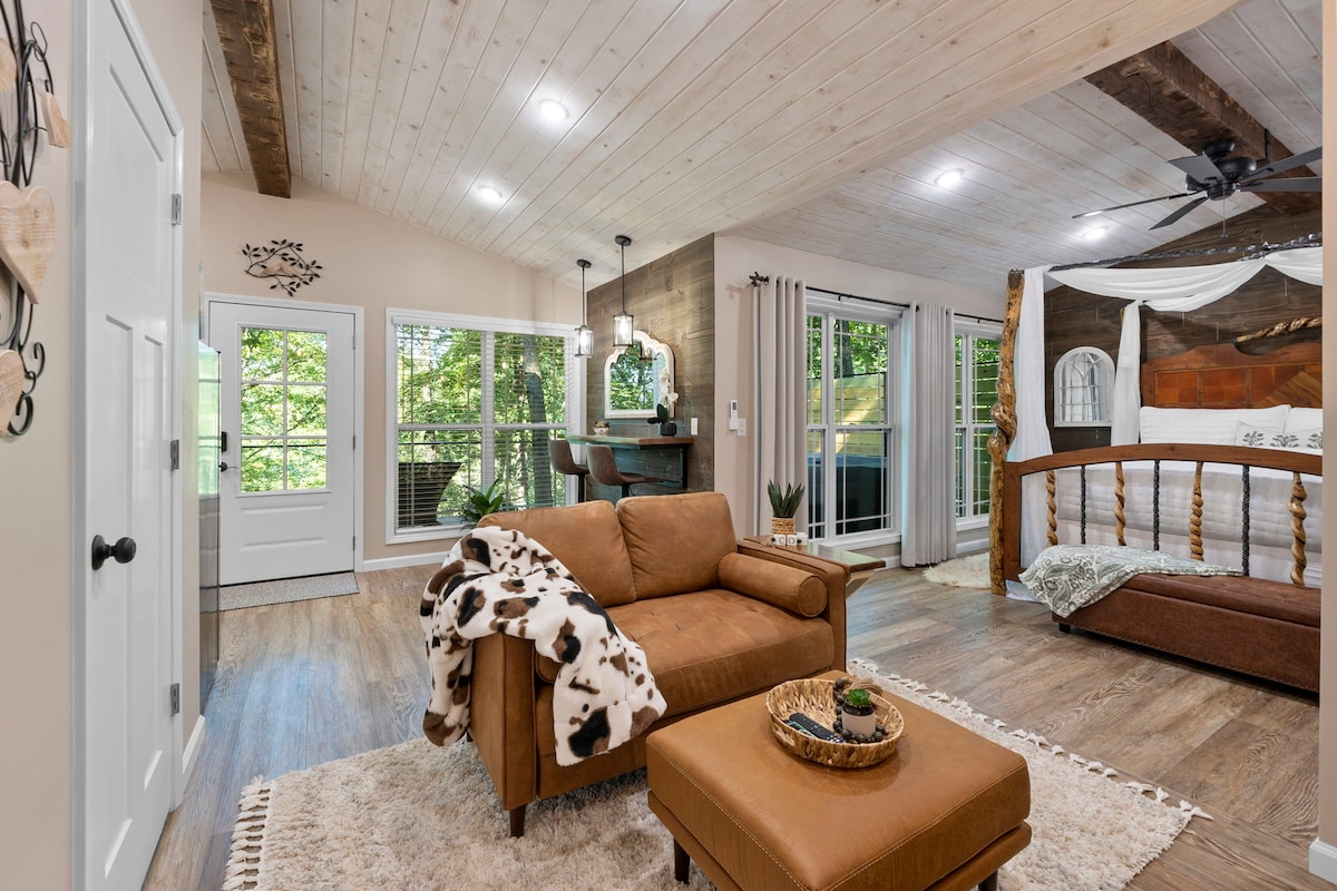 Una casa del árbol hecha a medida ubicada en 10 acres con vistas al agua que puedes disfrutar desde la bañera de hidromasaje en la terraza. ¡Está enclavada en lo alto de los árboles y es la escapada romántica perfecta para dos! ¡Siéntete como si estuvieras lejos de todo sin estar lejos de nada! Esta casa del árbol se encuentra en una carretera del condado a pocos minutos de Cape Girardeau. ¡Disfruta de la pesca con devolución en el lugar, bodegas locales, compras en el centro histórico de Cape Girardeau, restaurantes locales, juegos de azar, sitios históricos y mucho más!