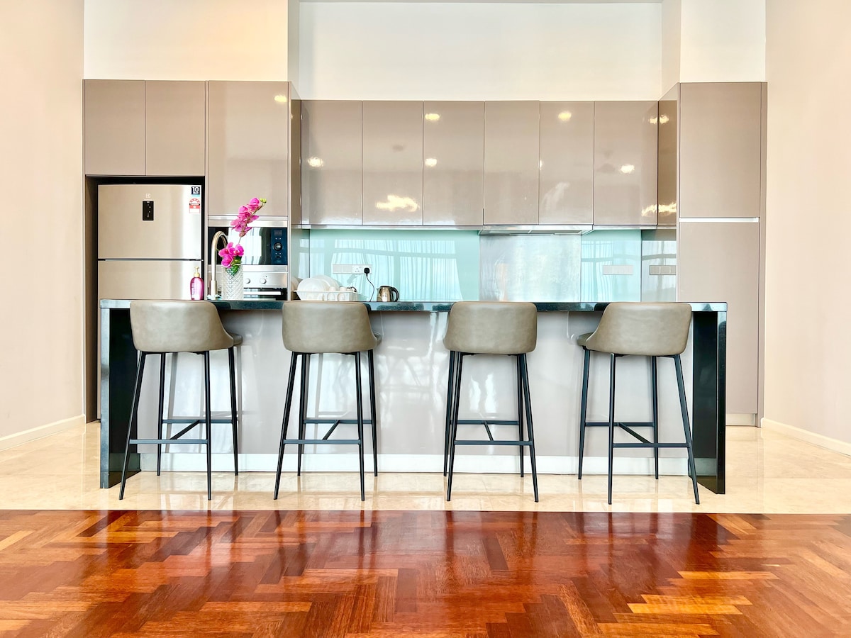Este apartamento con servicios de alta gama ofrece una vista impresionante del horizonte de Kuala Lumpur y está idealmente ubicado a 5-10 minutos a pie de las principales atracciones y centros comerciales de la ciudad. Los huéspedes pueden disfrutar de instalaciones de 5 estrellas, como una piscina infinita en la azotea, gimnasio, biblioteca, salón, restaurante/pub y estacionamiento. Además, está convenientemente conectado a la red ferroviaria interurbana y al transporte público, lo que garantiza un fácil acceso a los servicios de la ciudad.