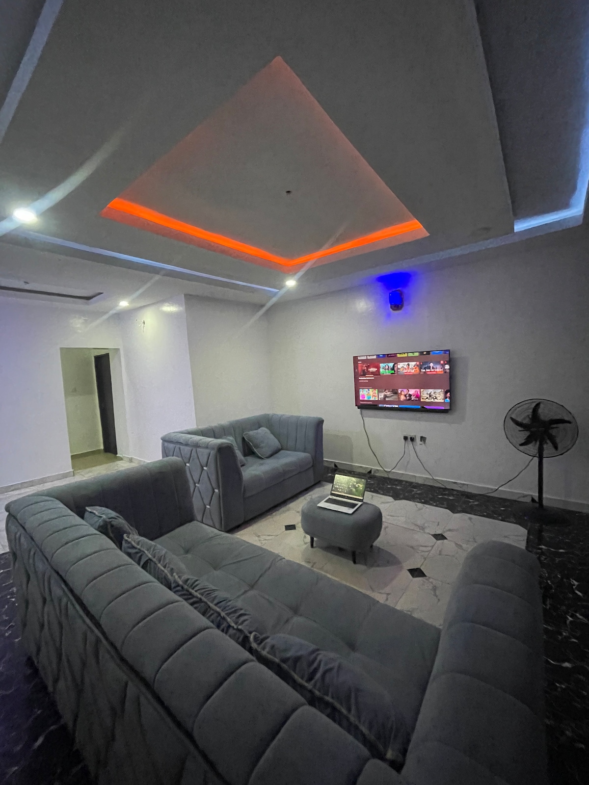 Welcome to our spacious 3-bedroom apartment, conveniently located near the airport in a serene, quiet, and secure neighborhood. Ideal for families, groups, and business travelers, the apartment offers 3 ensuite bedrooms for added privacy and comfort. Enjoy a fully equipped kitchen, generous living spaces, and reliable backup power supply for a smooth stay. Perfect for guests seeking comfort, convenience, security, and easy airport access in a calm setting.