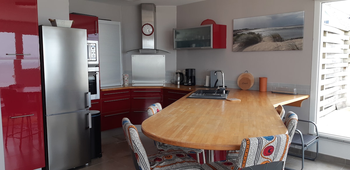 Adopta la actitud Cocooning En el corazón de la bahía de Somme - muy bonito apartamento auténtico, cálido y de diseño. Se proporcionan sábanas y toallas. Suplemento de 50 € por 1 mascota. 🐾🐶 no olvide declararlo. 😜 Esta casa de campo totalmente restaurada de 120 m2 ofrece espacios muy bonitos, así como una vista panorámica de la bahía con las idas y venidas de las focas. Situado al pie de las tiendas y de la plaza del mercado, solo tiene que aparcar el coche y pasear.