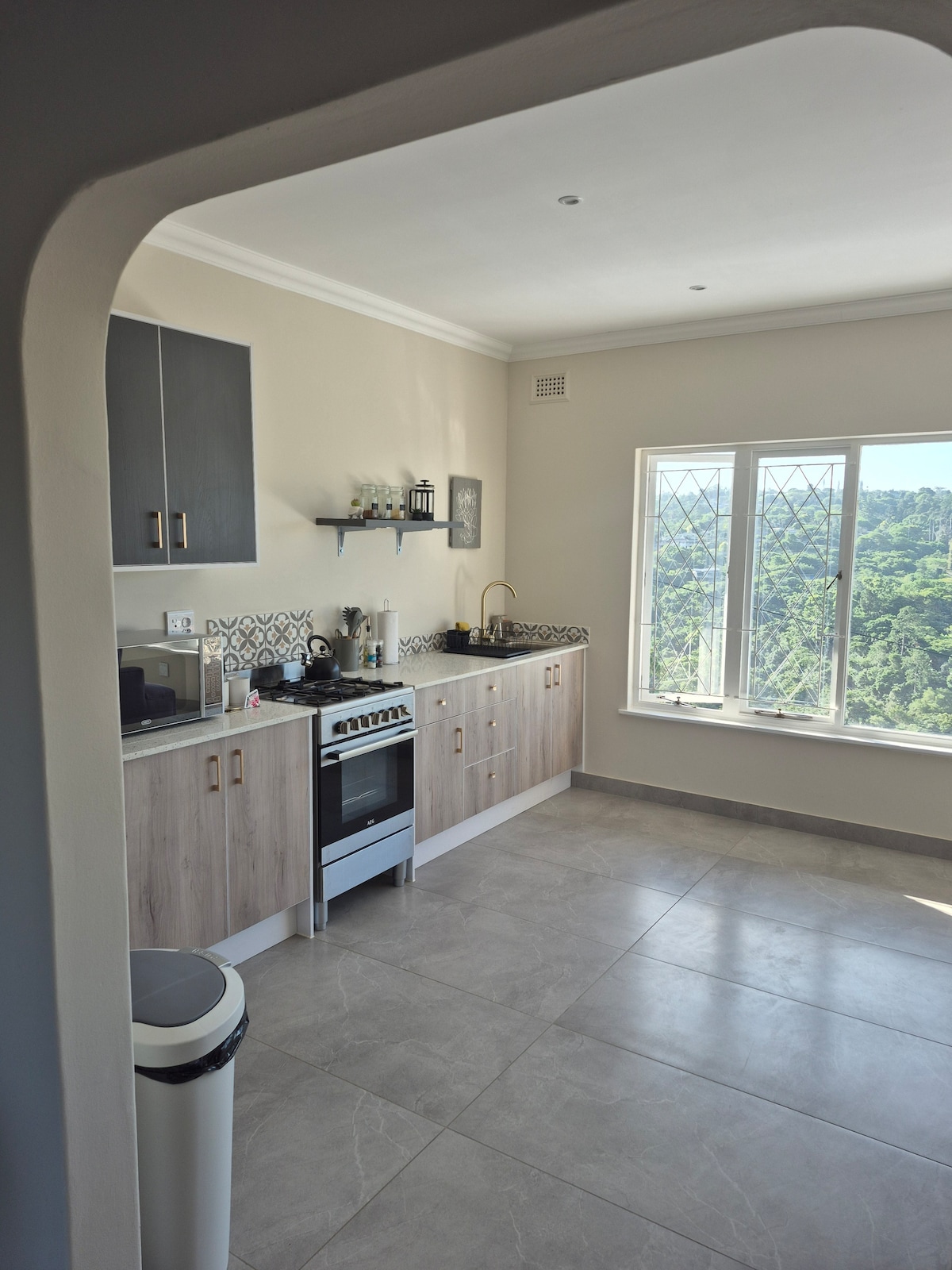 Peaceful, private, spacious & free standing cottage, centrally situated in the heart of Durban. A large fully fitted kitchen, gas HOB (no oven), washing machine & dishwasher for longer stays. 🔸️Perfect for couples and buisness travelers. 🔸️King size bed (can be split into 2 singles) situated in a residential area. 🔸️Modern walk-in rain shower. 🔸️Open plan living room with work space (2 built-in USB charging ports) 🔸️Air-conditioning 🔸️Fast WiFi, Smart TV, Netflix