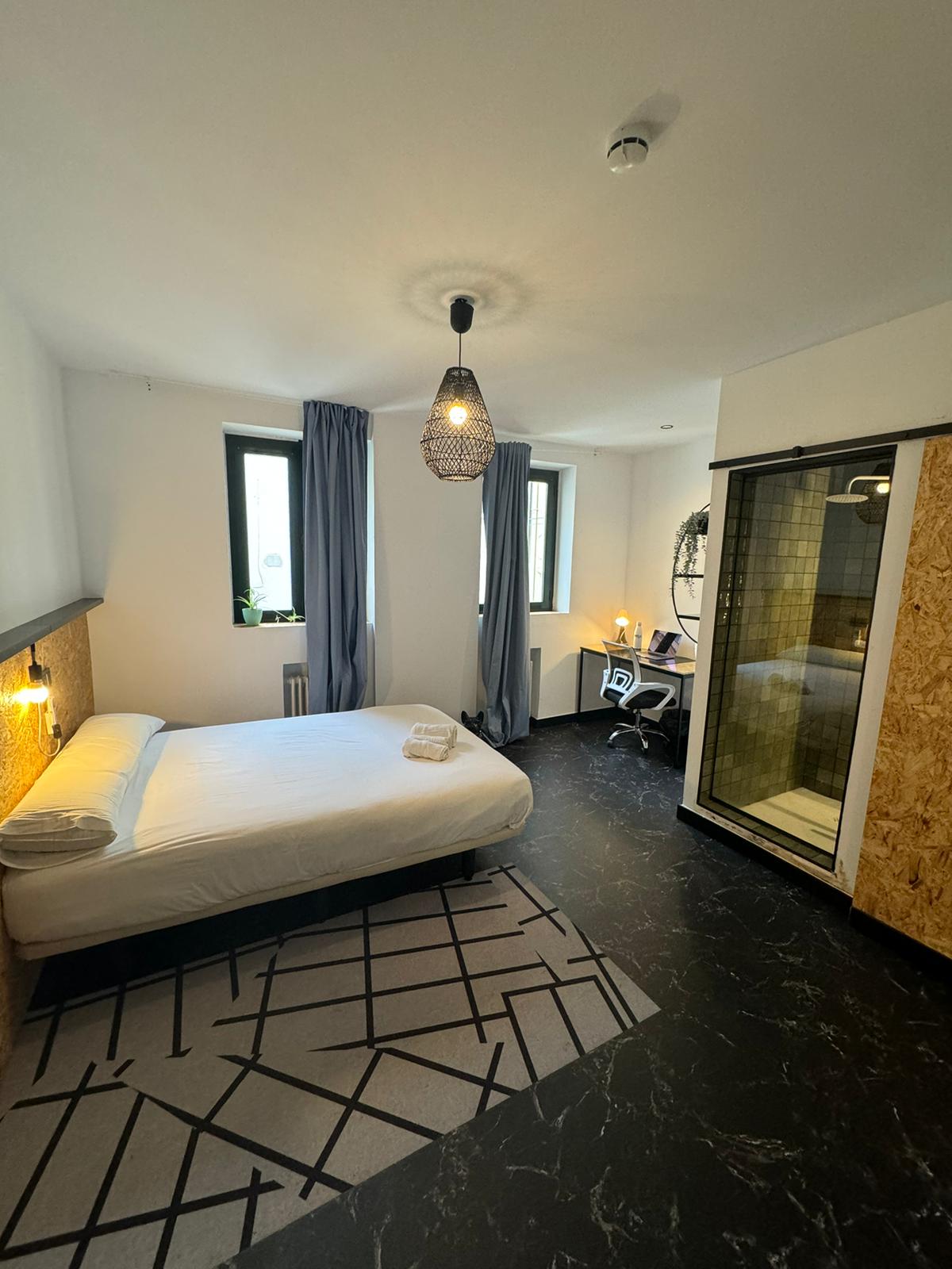 Experience modern comfort and functionality in this thoughtfully designed room, ideal for travelers seeking privacy and independence in Madrid. Featuring a full bedroom with two beds, a bathroom with shower, and all the details needed for a restful stay, it’s perfect for both business and leisure. The contemporary style and 21m² of space offer character and convenience. Enjoy amenities like free Wi-Fi, minibar, and air conditioning for a seamless visit.
