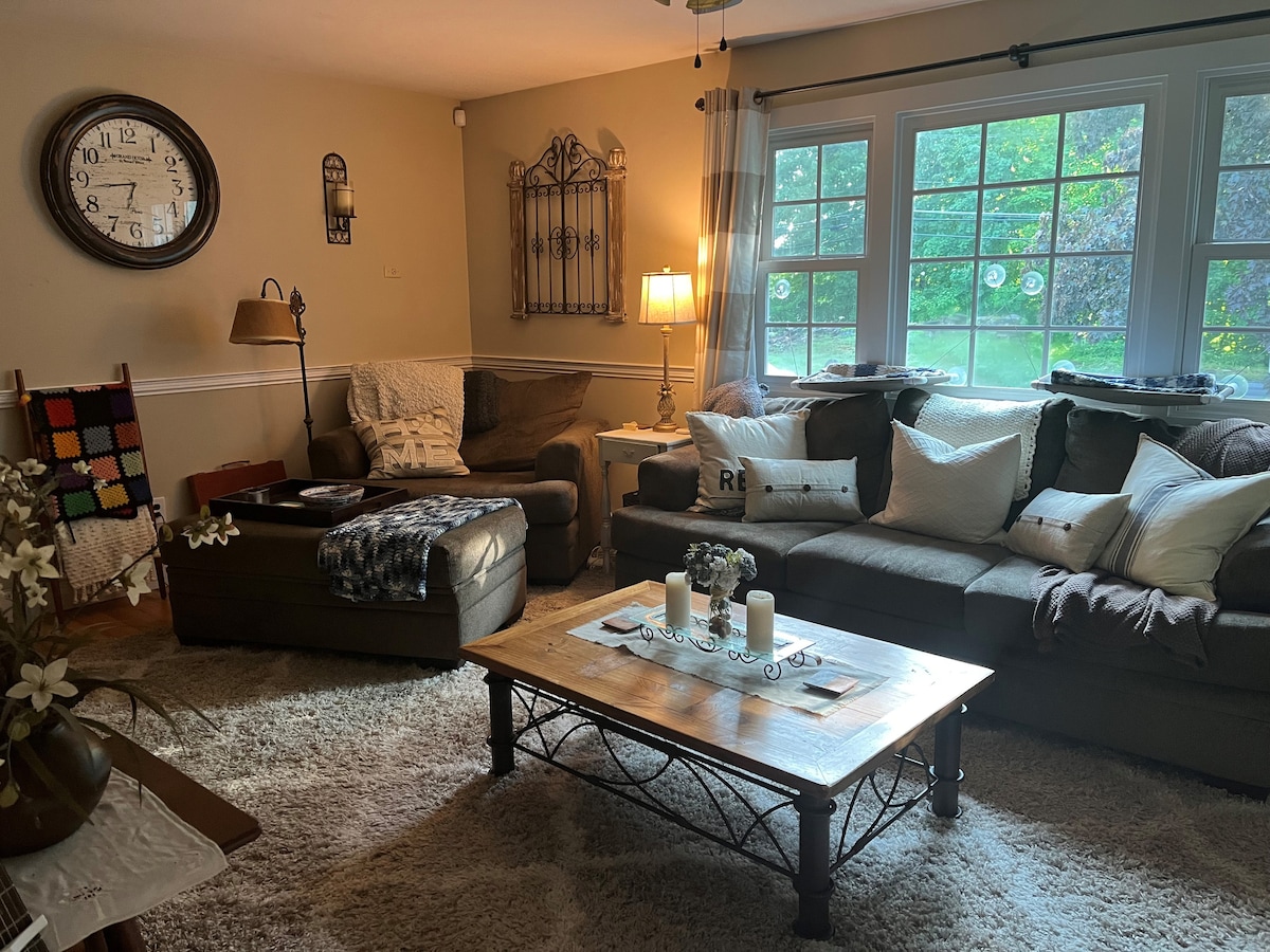 ¡Escápate a nuestra casa de campo en la ladera con impresionantes vistas al atardecer bordeadas de árboles! Perfecto para parejas, familias y viajeros de negocios. Relájate en el porche delantero con mosquitera y en el patio privado trasero. Cocina en la cocina totalmente equipada y utiliza Internet de fibra para trabajar o ver películas. A solo 90 minutos de Nueva York con fácil acceso a las ofertas de Newtown, Bethel y Fairfield County. A minutos de los parques estatales, el río Housatonic, el lago Candlewood y el mercado de pulgas Elephant Trunk. La mezcla perfecta de tranquilidad y comodidad.