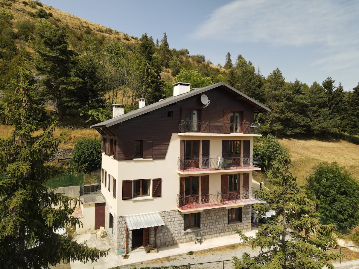 Séjournez dans une grange rénovée et avec une cheminée, tout confort, avec terrasses et barbecue, en plein cœur de la nature ! Pièce à vivre cosy au rez de chaussée et chambre familiale à l'étage. Multi exposition, soleil et calme au rdv. Vous serez au départ de belles randonnées, et à 8 minutes seulement de la station de ski de Valberg. Profitez de la montagne, du calme et du grand air !
