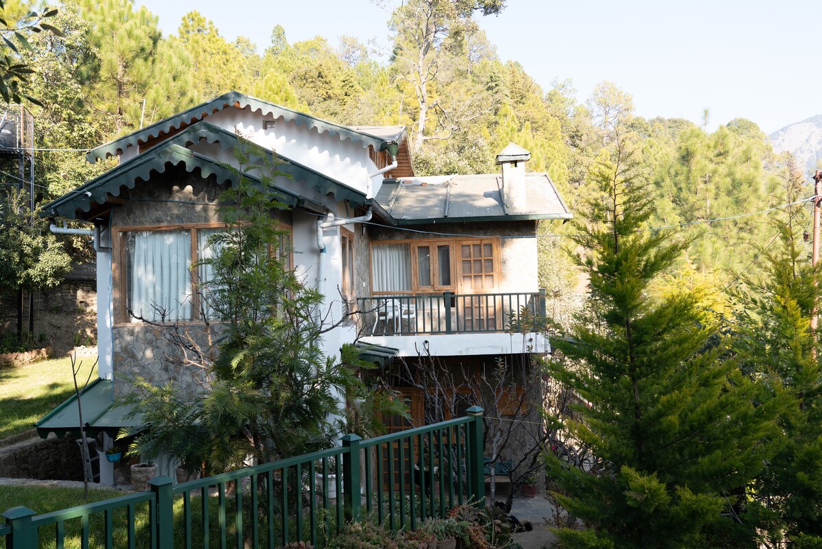 Esqape Mukteshwar: Mejor valorado | Elegante y elegante | 3 BHK | Admite mascotas | Casa de familia | Impresionantes vistas de los picos de nieve. Las 5 mejores cosas que debes saber: 1. Ubicación aislada, rodeada de naturaleza. 2. Increíbles vistas de los picos nevados del Himalaya. 3. Wifi de alta velocidad. 4. Utiliza nuestra cocina totalmente equipada o alquila a un cocinero. 5. Televisión inteligente con Netflix, Amazon Prime y TataSky.