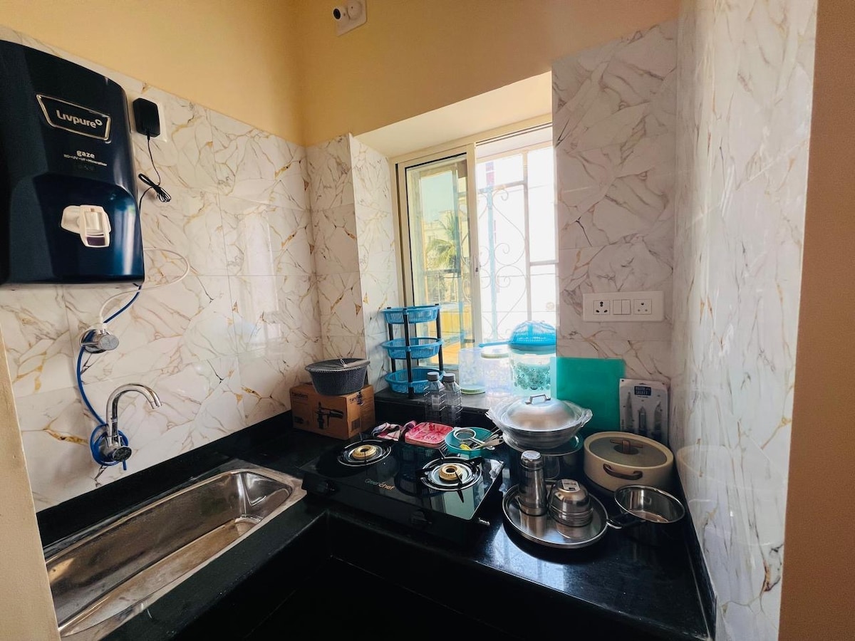 Un acogedor estudio privado totalmente amueblado de 1 bhk con todos los servicios de un hogar, lejos de casa. La cocina está bien equipada con un purificador de agua, cocina de inducción y microondas con chimenea automática, un géiser para agua caliente y un aire acondicionado de 1,5 toneladas con una cama de bajo nivel para dormir tranquilamente por la noche. La sala tiene un sofá cama Diwan y un televisor inteligente de 44 pulgadas para entretenimiento con un wifi de 100 Mbps para tus necesidades de trabajo desde casa. Olvídate de tus preocupaciones en este espacio espacioso y sereno.